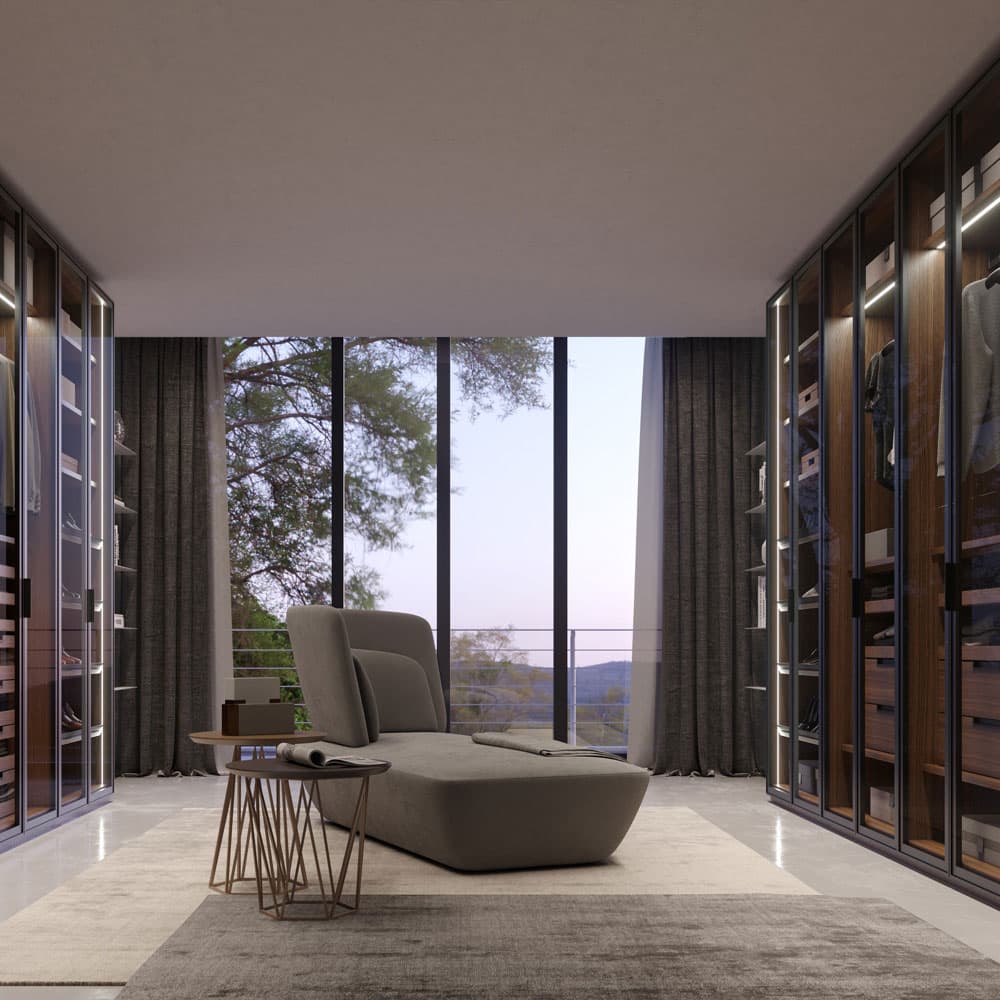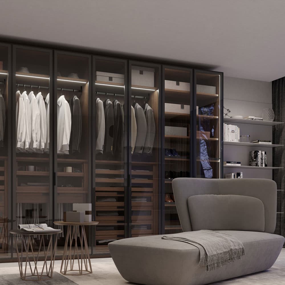 Atlante Wind Sliding Door Wardrobe by Emmebi is a complete & practical wardrobe for modern spaces. This wardrobe and every other wardrobe in our range is fully customisable. From size, doors, handles, interiors and finishes, we can build bespoke units that exactly match your needs. Our experienced designers are on hand to sit down and plan with you. Let us guide you through your options and help you make all the right choices. To find out more, contact us today. You can hop on a zoom call, send us a whatsapp or give us a call. Our showroom is also open seven days a week, so book a guided tour or pop in to view our latest samples.