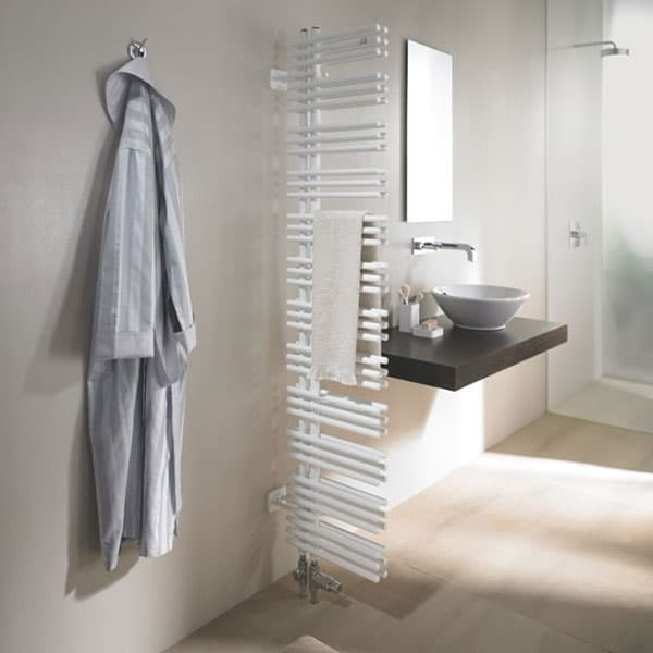 The stunning Roda radiator is designed to be used on a central heating system. It features a hot-air booster fan that can be operated independently at the touch of a button – a clever inclusion for warming towels. Available in white and a selection of vibrant colours, it’s a fun addition to any bathroom.