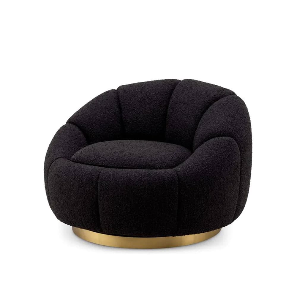 Bouclé black | brushed brass finish swivel base