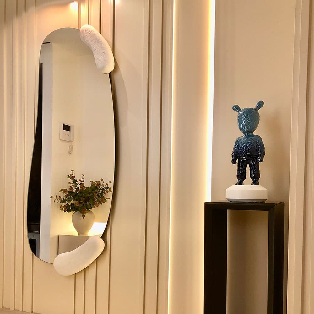The Calco White Hall is a statement piece that adds a touch of drama and sophistication to any space. Its unique design and craftsmanship make it a conversation starter and a focal point in any room. The combination of smooth and textured surfaces creates a visually stunning effect that is both elegant and modern. Whether placed in a hallway, living room, or bedroom, the Calco White Hall is sure to make a bold statement and elevate the decor of any space. Its Italian-inspired design and attention to detail make it a timeless piece that will be cherished for years to come. Add a touch of decorative drama to your home with the Calco White Hall mirror.