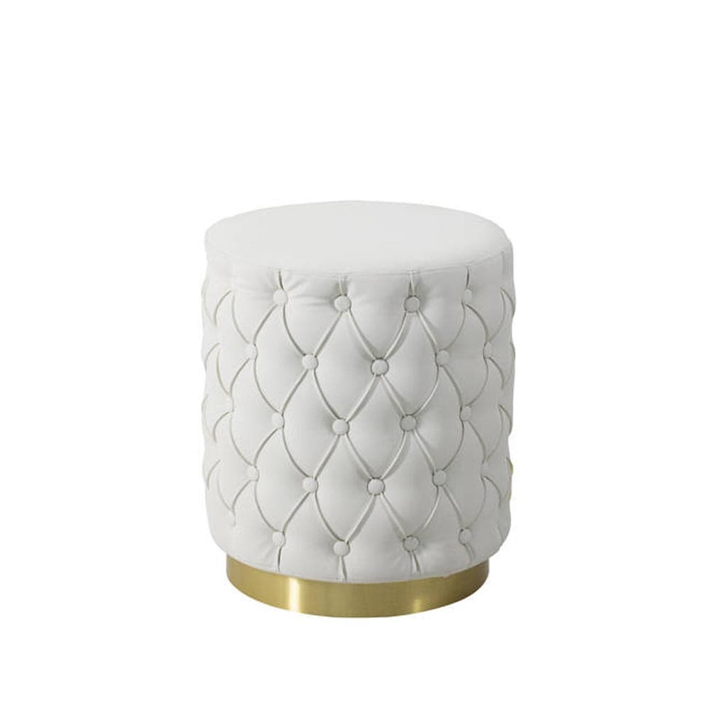 Introducing the Cruise Cap Footstool by Aria, a luxurious pouf featuring a brass base and fabric or soft leather covering. Available in plain or button tufted finish, this elegant piece adds a touch of sophistication to any interior space.