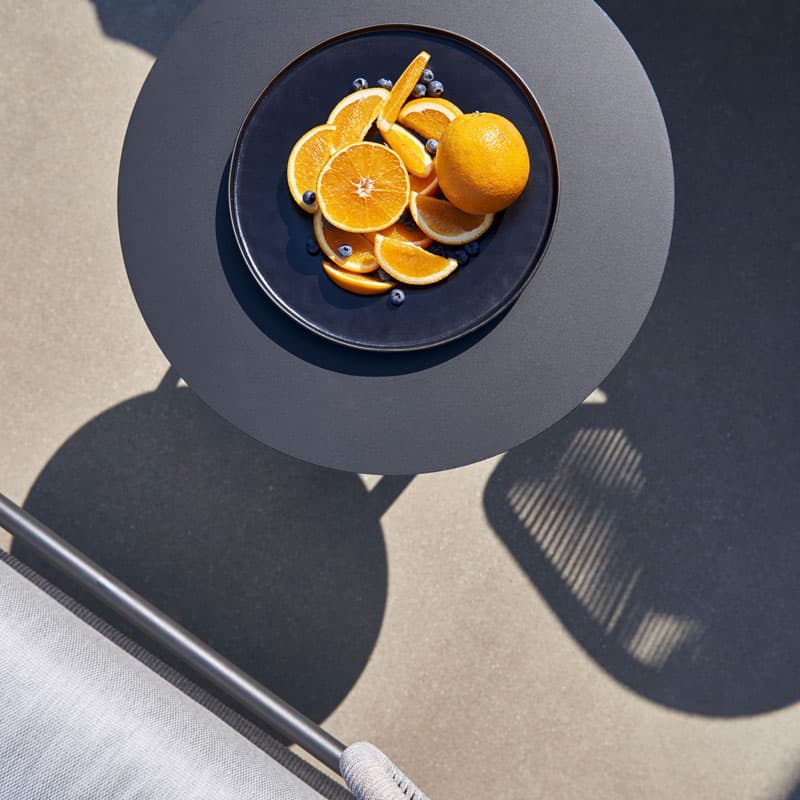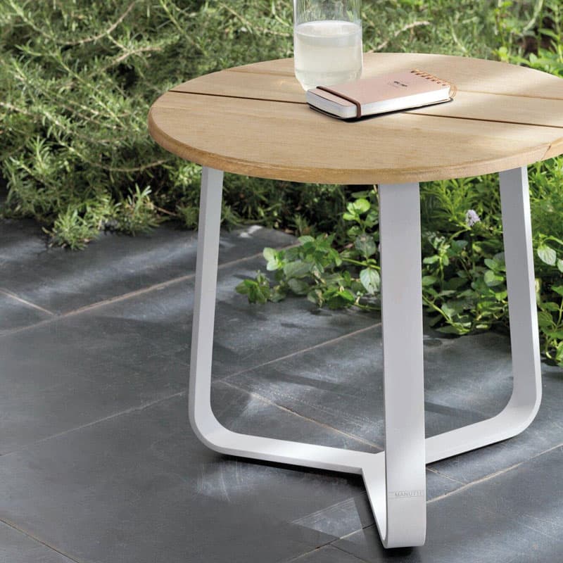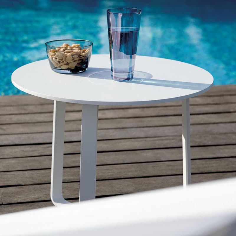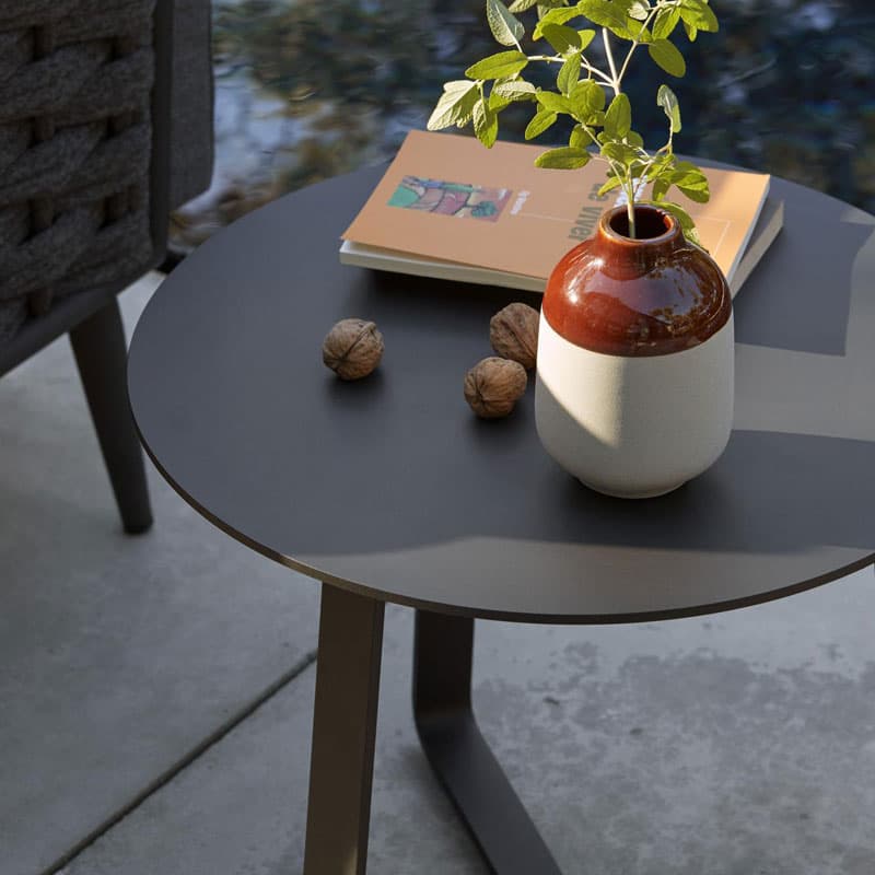 Introducing the Giro Outdoor Side Table by Manutti. This functional side table features an elegant aluminium frame and a round tabletop. Lightweight and versatile, Giro is available in various sizes and finishes to suit any outdoor space.