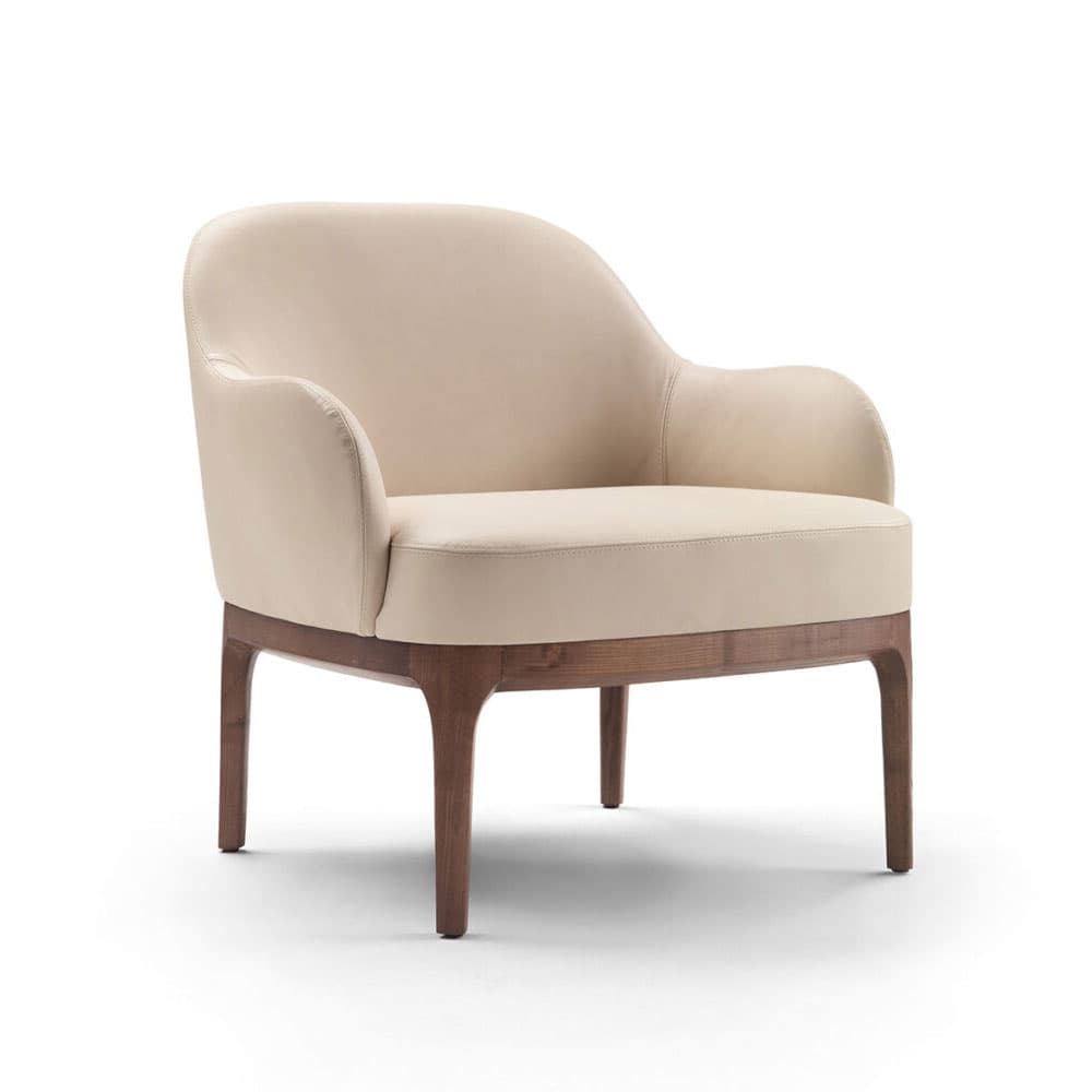 The solid ash wood legs, available in natural, moka, walnut, or smoked finish, add a touch of sophistication. Opt for the PLUS version with fabric or leather-covered legs for added elegance. The covering, fixed in high-quality fabric or leather, completes this refined piece, promising enduring style and comfort. Elevate your living space with the timeless Ingrid Armchair.
