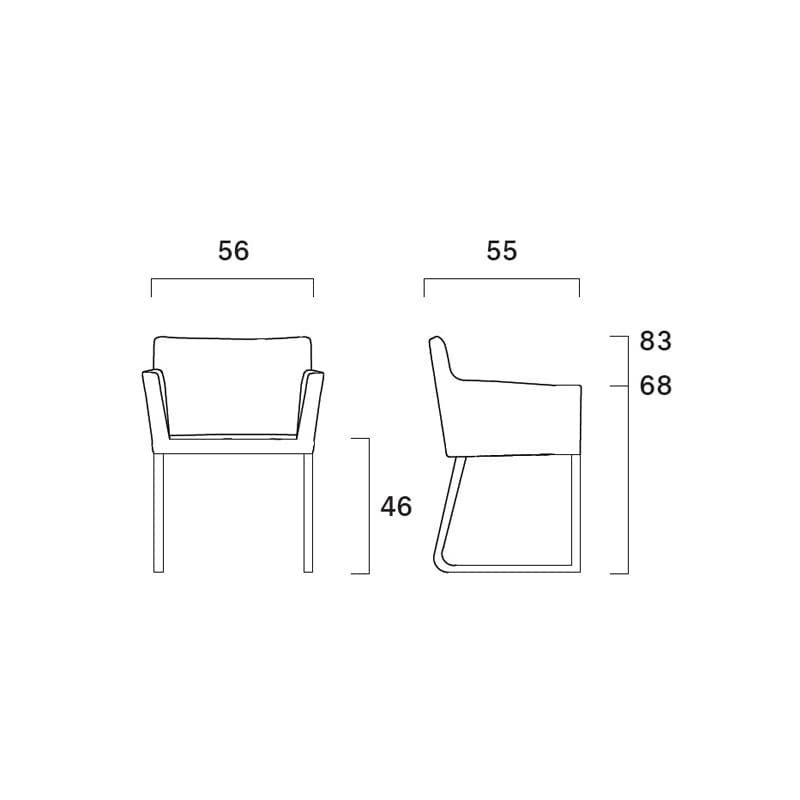 Kati Pz armchair by frag is the version with sled legs of the homonymous collection. The steel base can be painted or in polished chrome. The shell, in cold-foamed polyurethane, is lightly padded and upholstered in leather or in the fabrics of the collection.