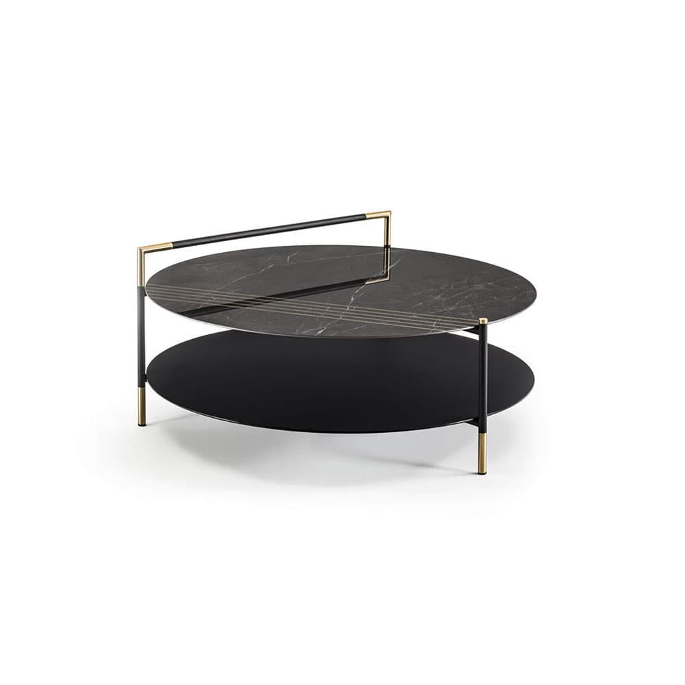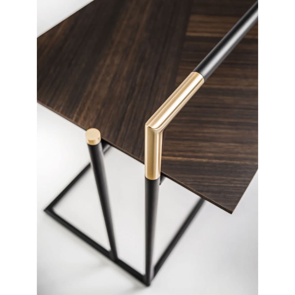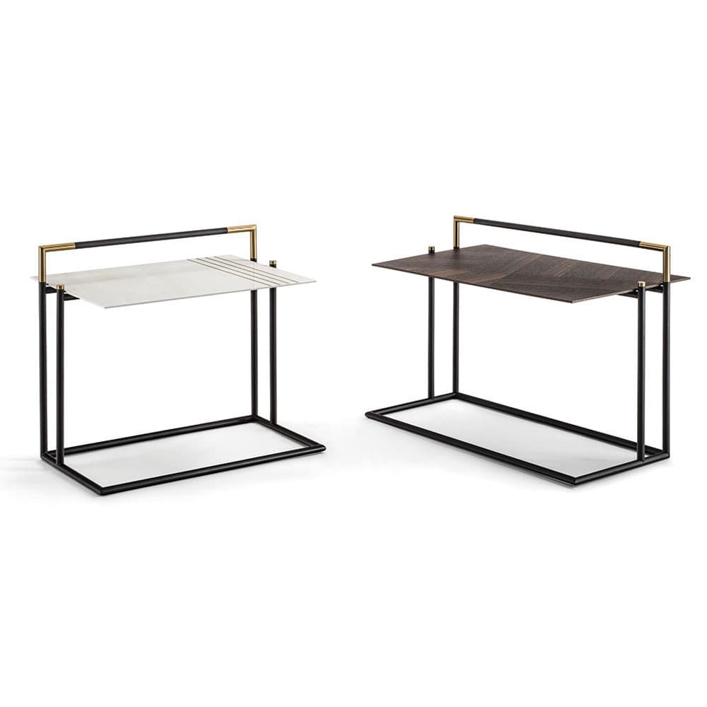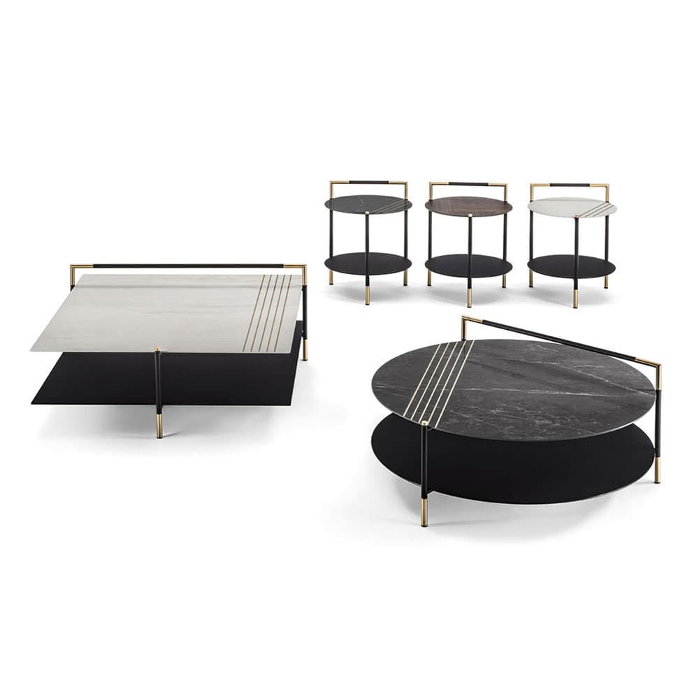 The Kevin coffee tables and consoles are defined by the minimum thicknesses of their tops and structure. They're made from stainless steel with a black high-gloss powder coat finish that resists scratching and corrosion.
