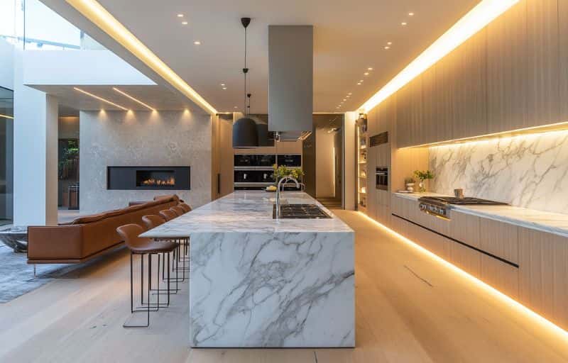 Making a new dish for your family will feel significantly more comfortable in an airy and bright luxury kitchen, wouldn’t it? As a consequence, a light-filled design created by a master designer is an idea that ought to be considered. Incorporate large windows or a glass door to capture as much natural light as possible. Consider integrating reflective surfaces like stainless steel cabinets to further amplify the flow of light into your kitchen. Mirrors could also be an option. Lastly, choose colour schemes of lighter colours like white or cream to bring about an airy and cheerful ambience to the space.