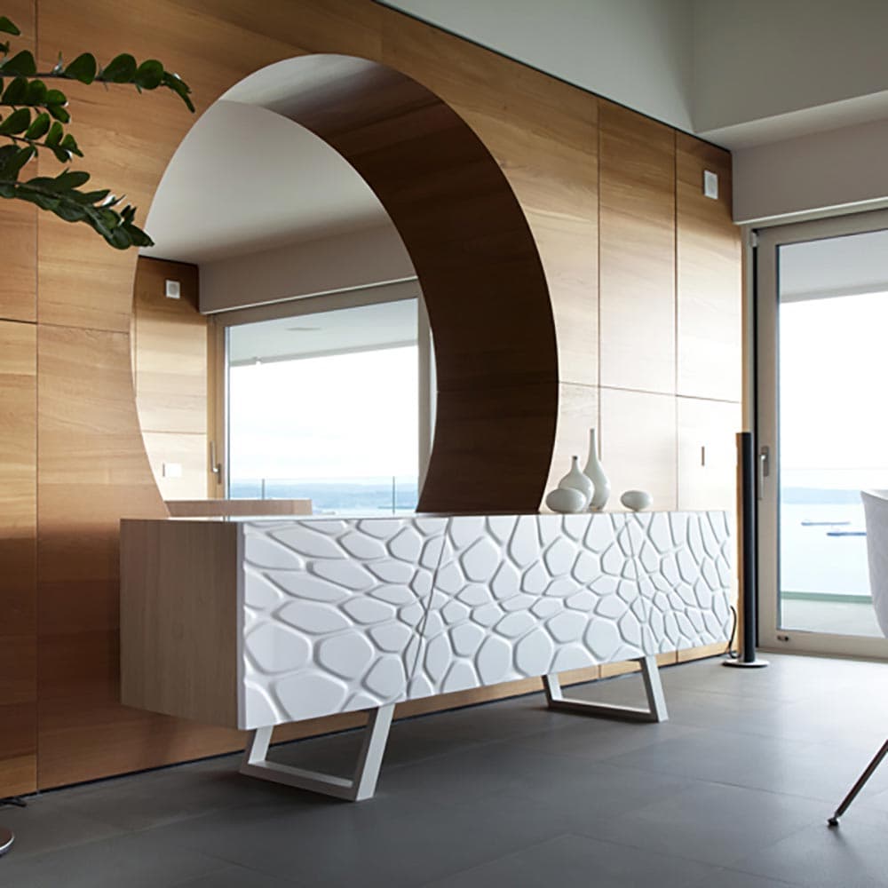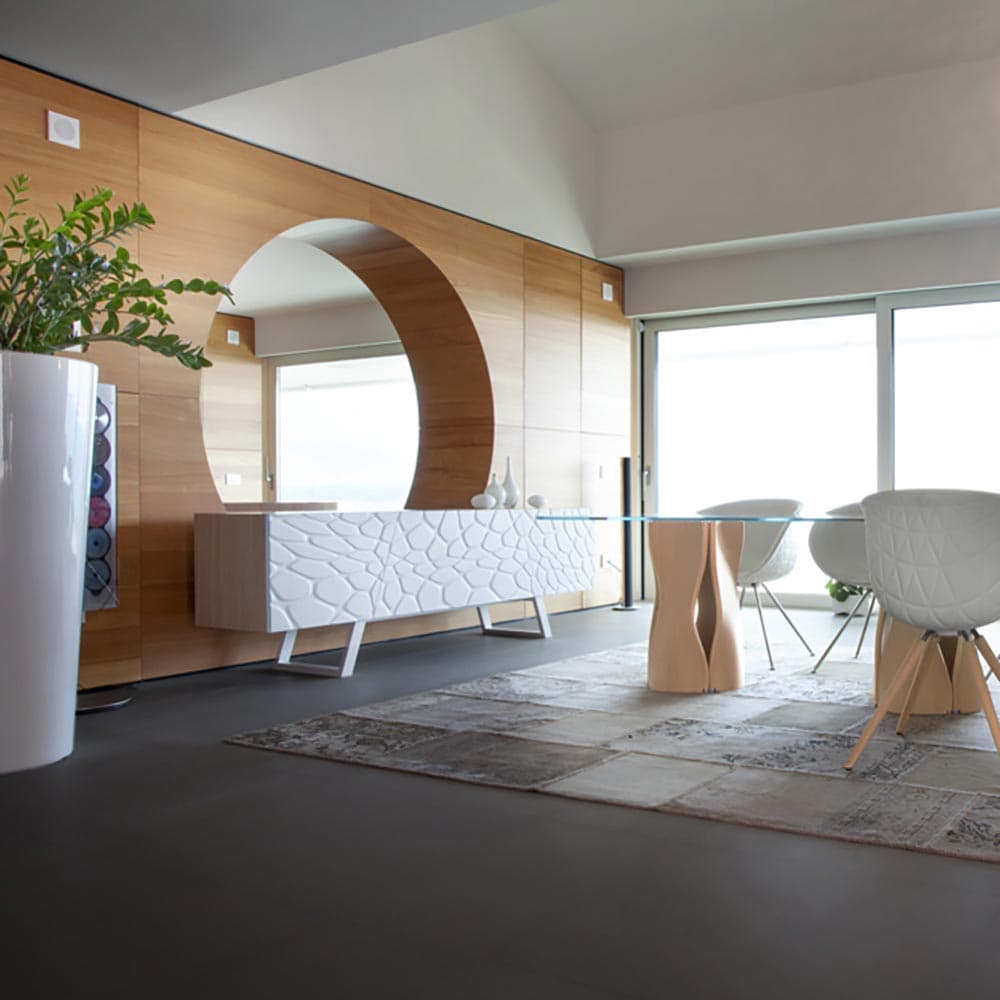 The tasteful Move Sideboard devised by Tonon is a clever match for your dining area. Sideboards are practical furniture pieces that help you keep your space tidy and uncluttered. We stock many modern sideboards and we can help you find the best option for your living room. Choose from custom options such as size, shelving, finish and materials. If you can't find what you're looking for, we can create something bespoke for you. Pop in and visit our showroom, zoom with us or send us a whatsapp for expert advice.
