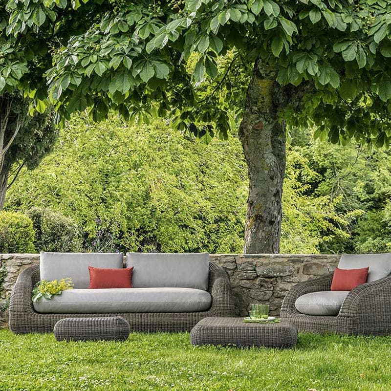 The Phorma Outdoor Armchair is a beautiful work by Ethimo that is sublime for your garden. Experience the Mediterranean at home with Ethimo's classic outdoor pieces.