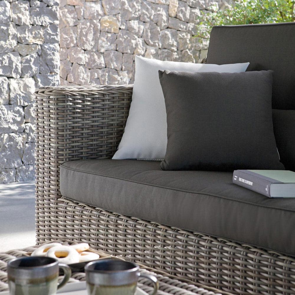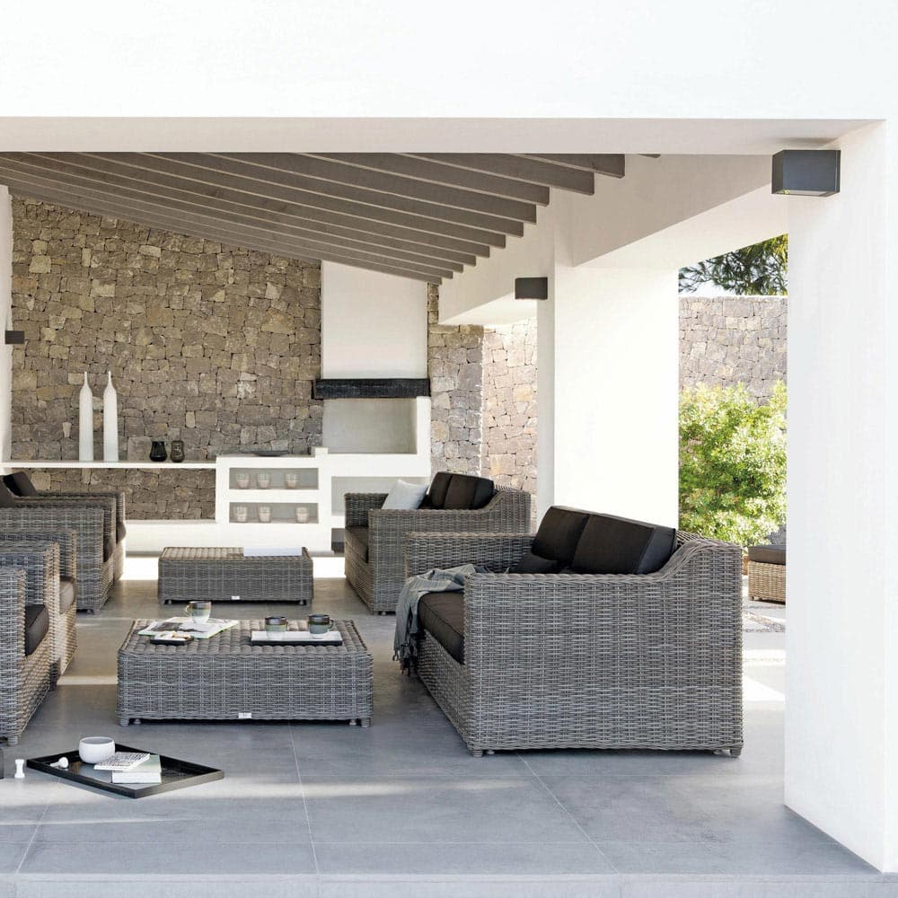 Elevate your outdoor space with the Manutti San Diego Outdoor Sofa. Crafted with water-repellent fabrics and synthetic rattan cane, this minimalist piece combines durability with organic charm. The timeless design adds sophistication to any setting.