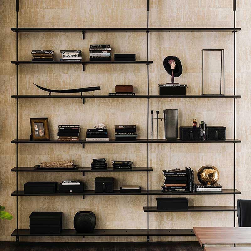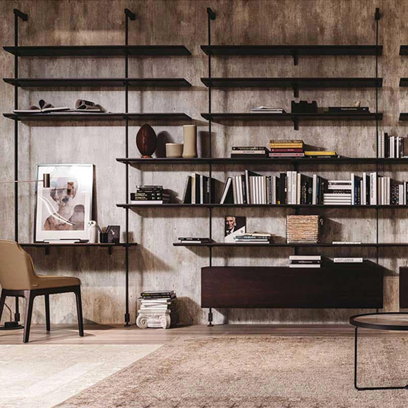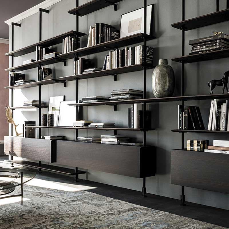 True to Cattelan Italia's mission to produce extraordinary furnishings, the Airport Bookcase is a study in versatility. Offering an array of fantastic customisation options, this piece is strong, durable and the perfect answer to all your storage issues. Modular and stylish, it can be placed against a wall or used as a hanging room divider depending on your needs, adding both functionality and a sense of modernity to any contemporary room. The embossed lacquered steel brackets and pillars come in a wide choice of finishes and the shelves and containers are available in several high-quality materials including Canaletto walnut and burned oak.