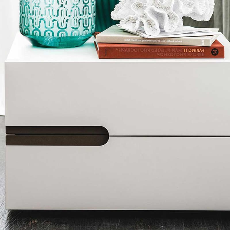 Cattelan Italia's Ciro Bedside Table collection is simple yet elegant and is available in two different heights, one at floor level and the other on a central lacquered steel pedestal with a broad square base. With two spacious drawers and a generous top it's the perfect storage solution, allowing ample space for bedside lamps, books, photographs and any other treasured items that you might like in your bedroom. The inserted drawer handles are upholstered in either synthetic or soft leather and the frame and fronts are available in embossed lacquered wood, Canaletto walnut or burned oak.