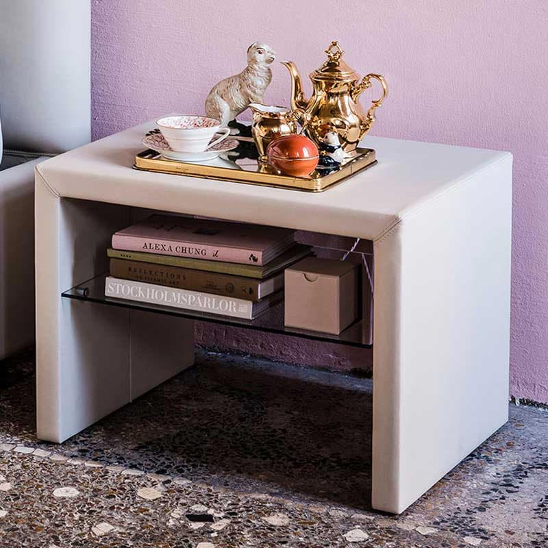 Wonderfully elegant, the Dorian Bedside Table by Cattelan Italia comprises a wooden structure covered in either leather or eco leather in a range of tasteful colours to suit your style. The transparent glass shelf adds a sense of lightness to the whole ensemble and is ideal for storing books, magazines or small ornaments. This piece epitomises the brand's commitment to exceptional workmanship and ability to create timeless offerings that will last for decades.