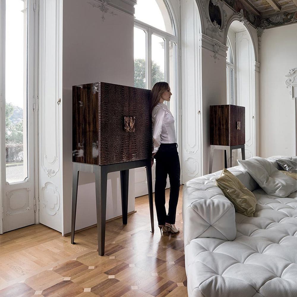 The refined Lady Tall Boy by Longhi is a sophisticated selection for your TV room. We have a beautiful selection of modern designer display cabinets, many with customisable options that can be tailored to your preferences. Our close supplier relationships allow us to request options that may not be on our product pages. Let us offer you expert advice you based on your requirements. Whatsapp us, call us or visit our showroom to see our sample cabinet selection.