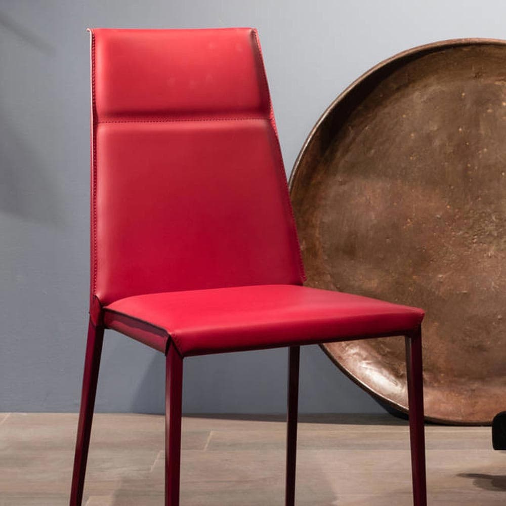 Introducing the Lolas Dining Chair by Aria, a stylish and comfortable seating option for your dining space. Featuring a unique "skin accent" on the backrest, this chair is available in 4 metal colors and 48 leather options. Choose from chair or stool versions for a pop of color in your home.