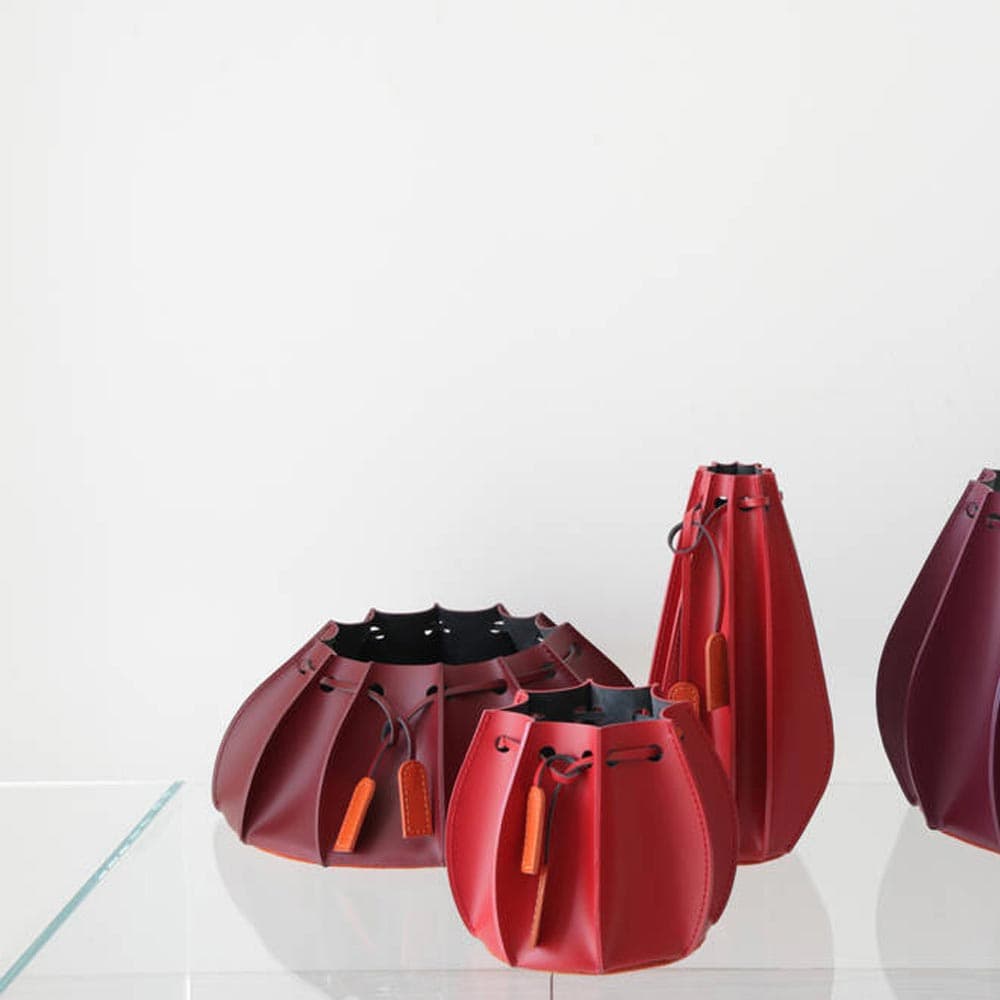 Elevate your interior decor with the Plisse - 05 Vase by Aria. Crafted from luxurious leather, these pleated vases come in a variety of colors and sizes to suit any space. Perfect for adding a touch of elegance to your home or office.