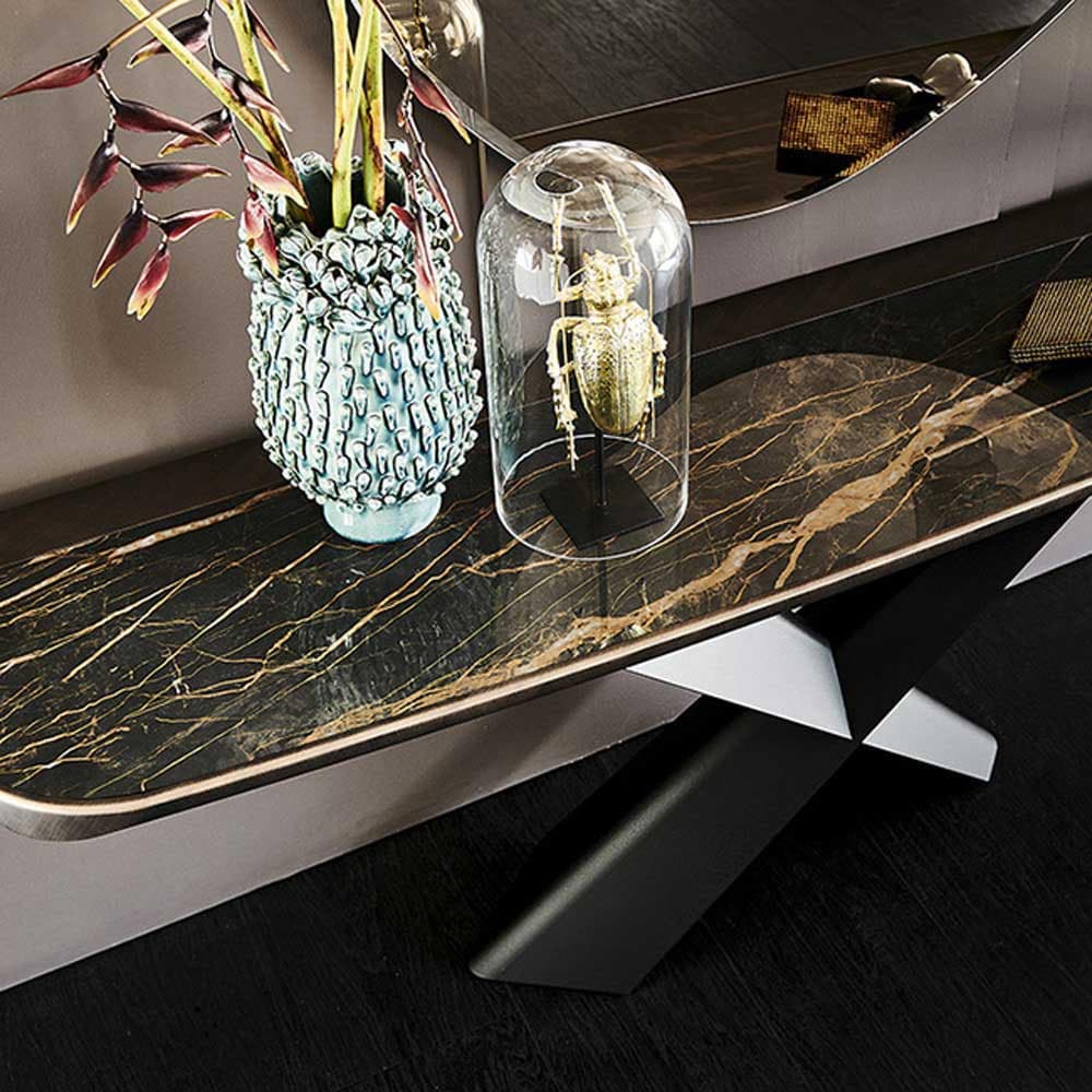 Both functional and decorative, the Terminal Keramik Premium Console Table is exactly what you need if you want to infuse a touch of class into your aesthetics and, whether you use it in your hallway, dining space or study, it's sure to bring you joy for years to come. Fully customisable, you can choose between a wide range of elegant finishes on the X-shaped base, and over twelve marbled colours when it comes to Cattelan Italia's signature ceramic tops.